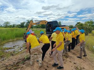 เมื่อเสร็จสิ้นพิธีการประธานฯ กล่าวพบปะกับเหล่าจิตอาสาฯ และปล่อยแถวดำเนินกิจกรรม โดยการกำจัดวัชพืชในห้วยลำเชียงไกร ซึ่งองค์การบริหารส่วนตำบลสำโรงได้จ้างเครื่องจักรเข้ามาช่วยดำเนินการตักวัชพืชขึ้นและขนถ่ายทิ้งบริเวณที่หมู่บ้านจะนำไปใช้ประโยชน์ได้ต่อไป โดยเหล่าจิตอาสาร่วมกันดึงวัชพืชเข้ามาอยู่บริเวณที่เครื่องจักรสามารถดำเนินงานได้