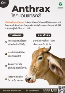 3. ถ้ามีสัตว์เลี้ยง โดยเฉพาะโค กระบือตายกะทันหัน ไม่ทราบสาเหตุ ให้สงสัยว่าเป็นโรคแอนแทรกซ์ ห้ามเคลื่อนย้าย หรือชำแหละโดยเด็ดขาด และให้รีบแจ้งสัตวแพทย์ทันที เพื่อเก็บตัวอย่างเลือดไปส่งตรวจชันสูตรโรค และควรทำลายซากสัตว์โดยการเผาตรงจุดที่สัตว์ตาย