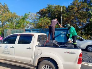 อบต.สำโรง นำขยะอันตรายเพื่อนำส่งให้ อบจ.นม. ไปกำจัดอย่างถูกต้อง ประจำปีงบประมาณ พ.ศ.2569